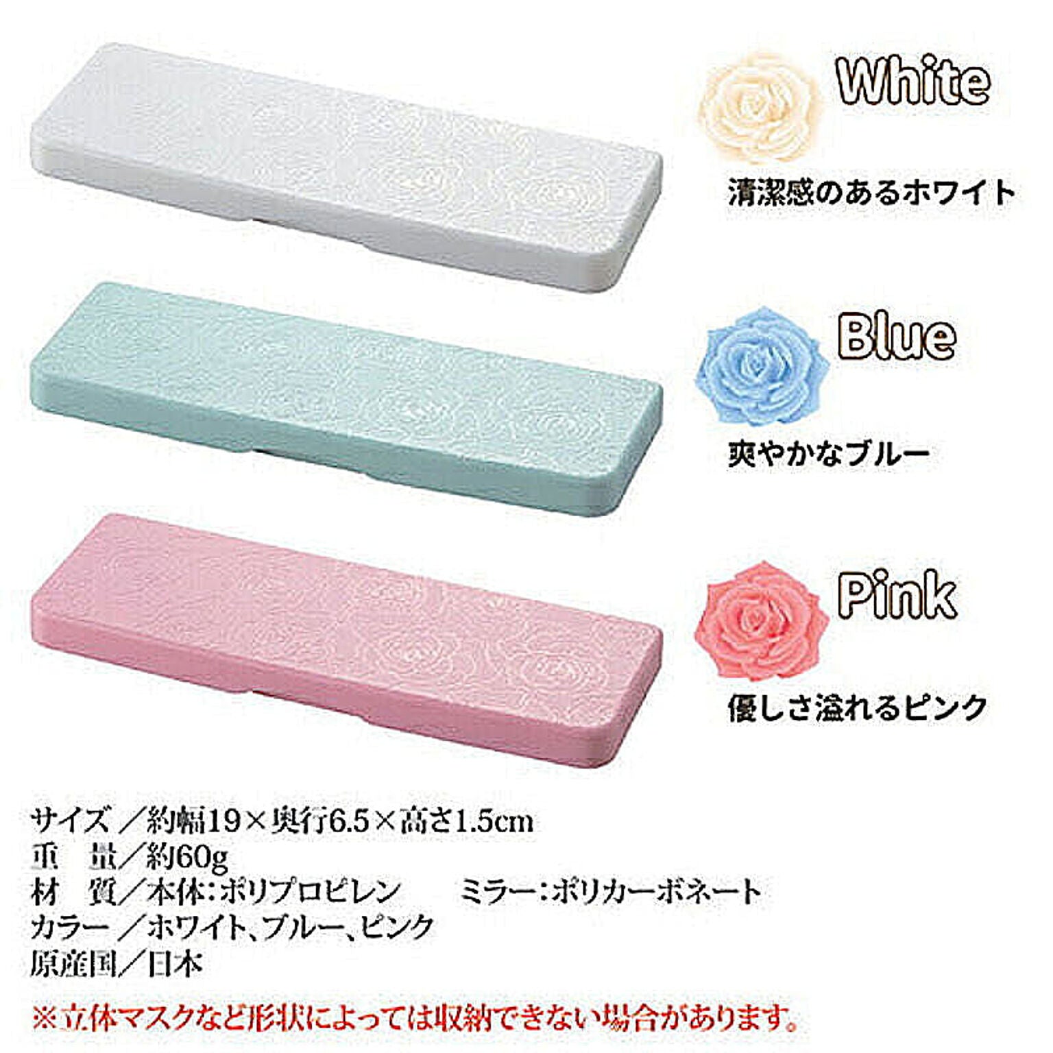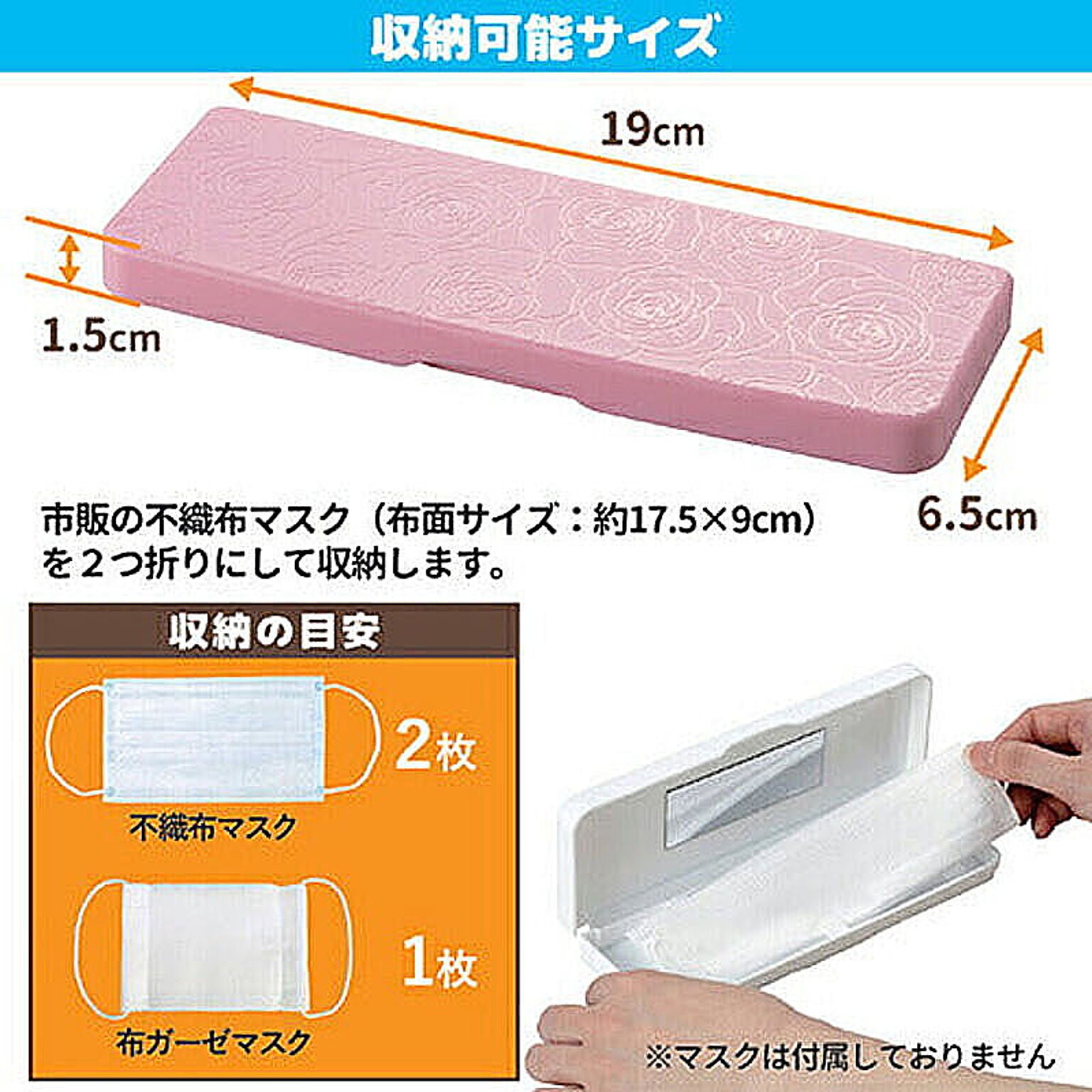 ※立体マスクなど形状によっては収納できない場合があります。●サイズ:約幅19×奥行6.5×高さ1.5cm 収納可能マスクサイズ/約17.5×9cm